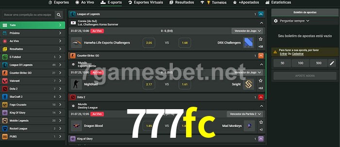 A aposta 777fc oferece aos jogadores a experiência mais conveniente de apostas em eSports!